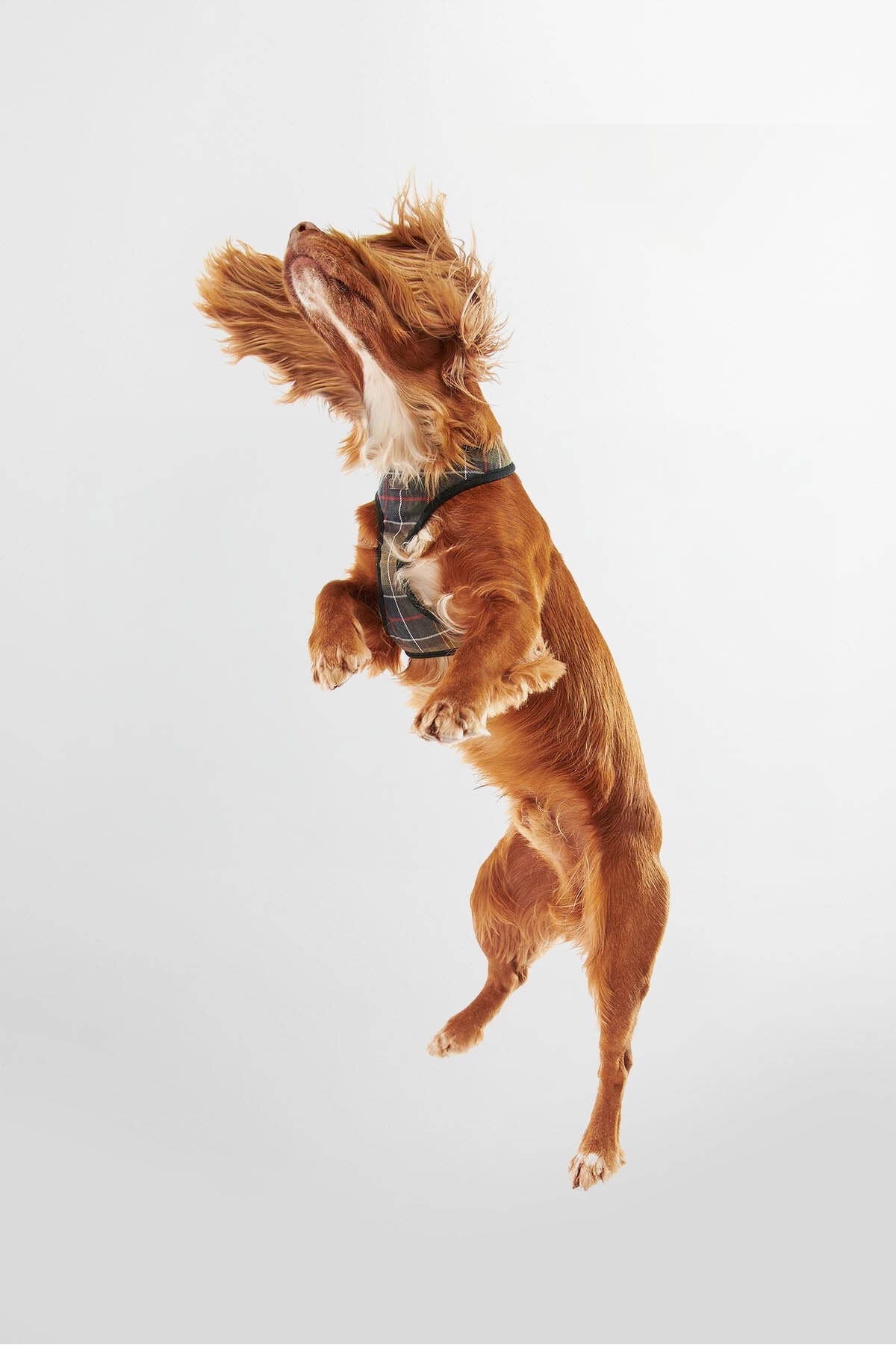 With an adjustable chest strap and cushioning for maximum comfort, this dog harness features the elegant house tartan and a metal D ring for attaching to leads.