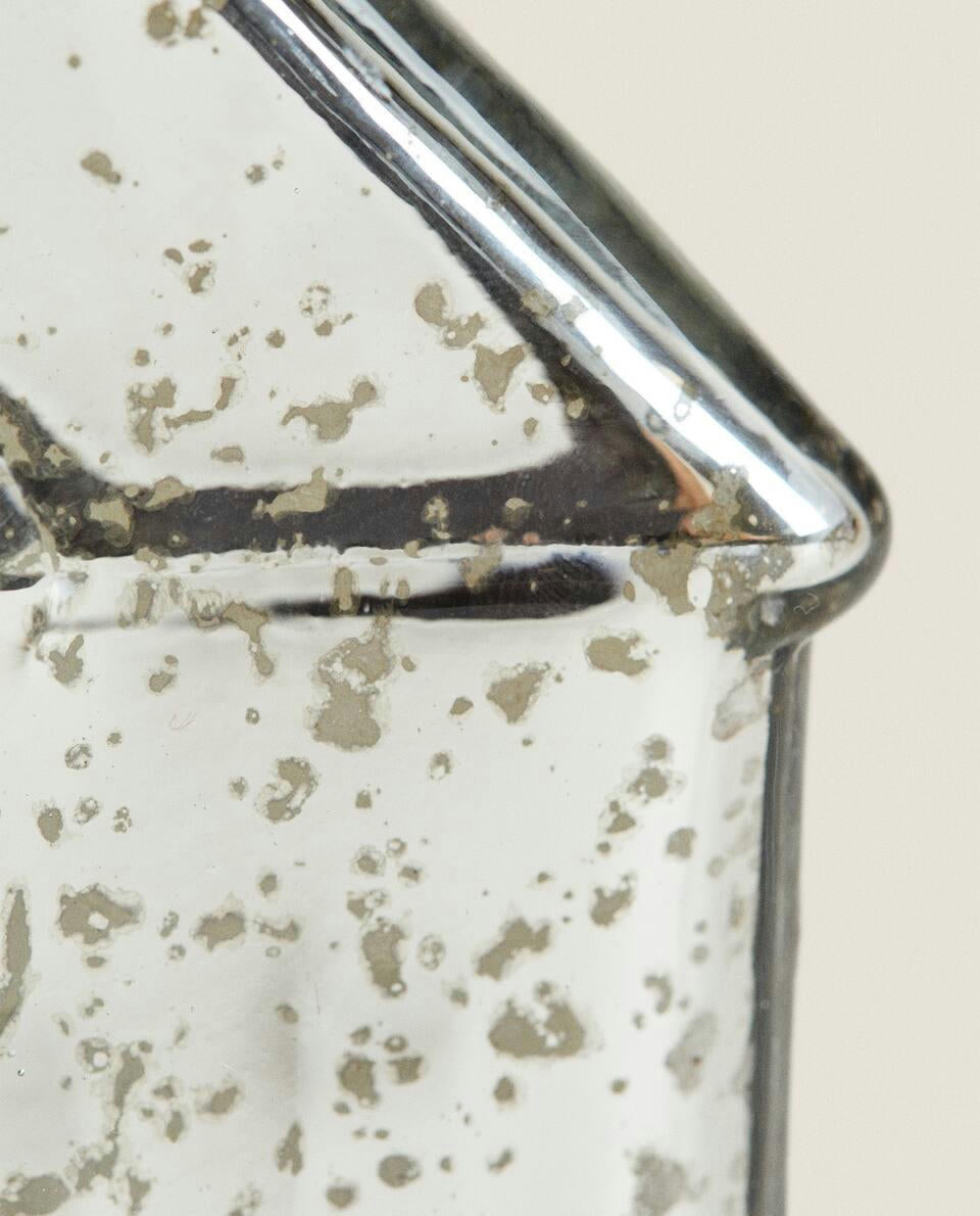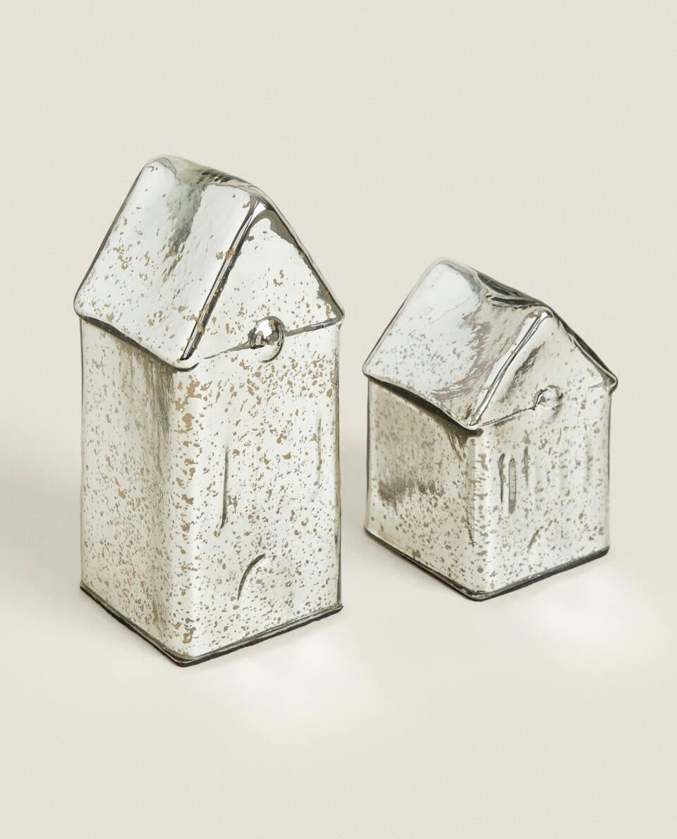 Decorative LED lamp, made of mercurised glass, in the shape of a little Christmas house.