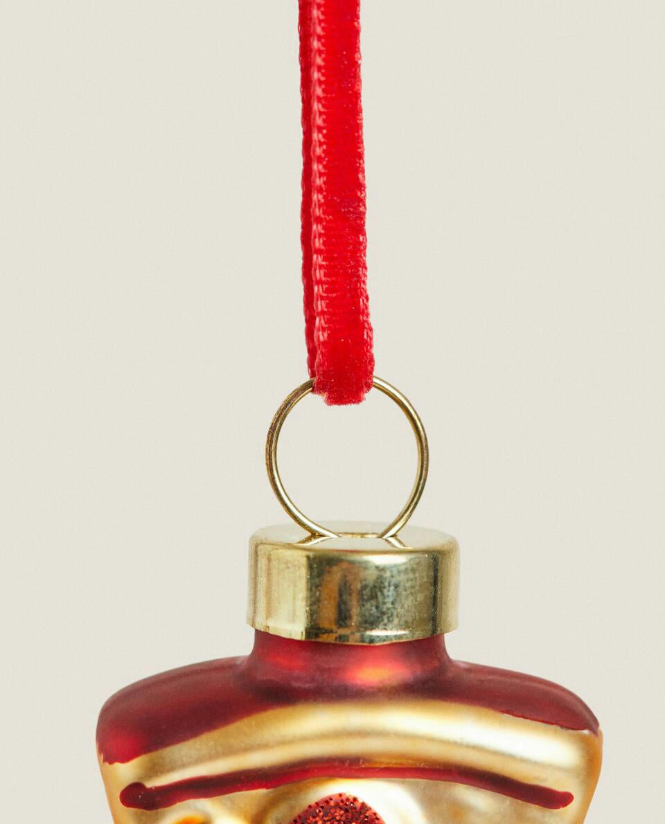 Glass Christmas tree decoration in fast food shape with glitter details.Pack of 6.
