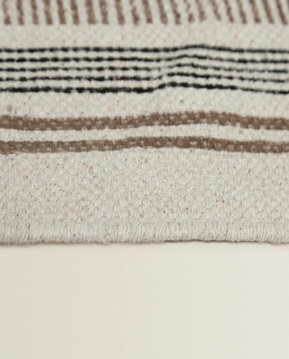 Lightweight rug featuring an all-over contrast print and fringed trim.