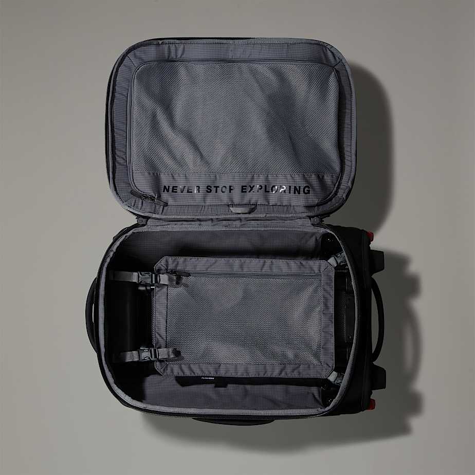 • Super-tough and versatile, the Base Camp Rolling Thunder 22" blends both mountain durability and high-level organisation for frequent flying or weekend adventures. It has a sizeable 40 litres of space but fits in most airlines' overhead storage. And being made from ultra-durable recycled Base Camp fabric with an improved hard-shell chassis designed to handle travelling around the world over and over again, it stands up to long-term, rugged use – just like its predecessor. The custom-moulded wheels make light work of rolling, even on gravelly terrain. Webbing compression straps let you secure belongings or compress the bag when it's not full. And padded side and top handles are super-comfortable and allow for multiple carrying positions. There are tonnes of pockets for travel essentials and dirty clothes, as well as webbing points that allow you to clip on additional items. If you need to save space, you can push down clothing using the internal compression panel. Plus, to keep valuables safe, the zip is lockable, giving you peace of mind when your main focus is the end destination.
